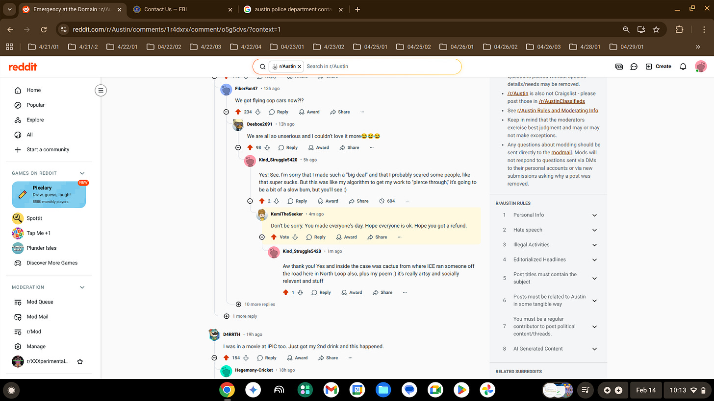 This is me placing a tip for myself with the FBI for terrorism