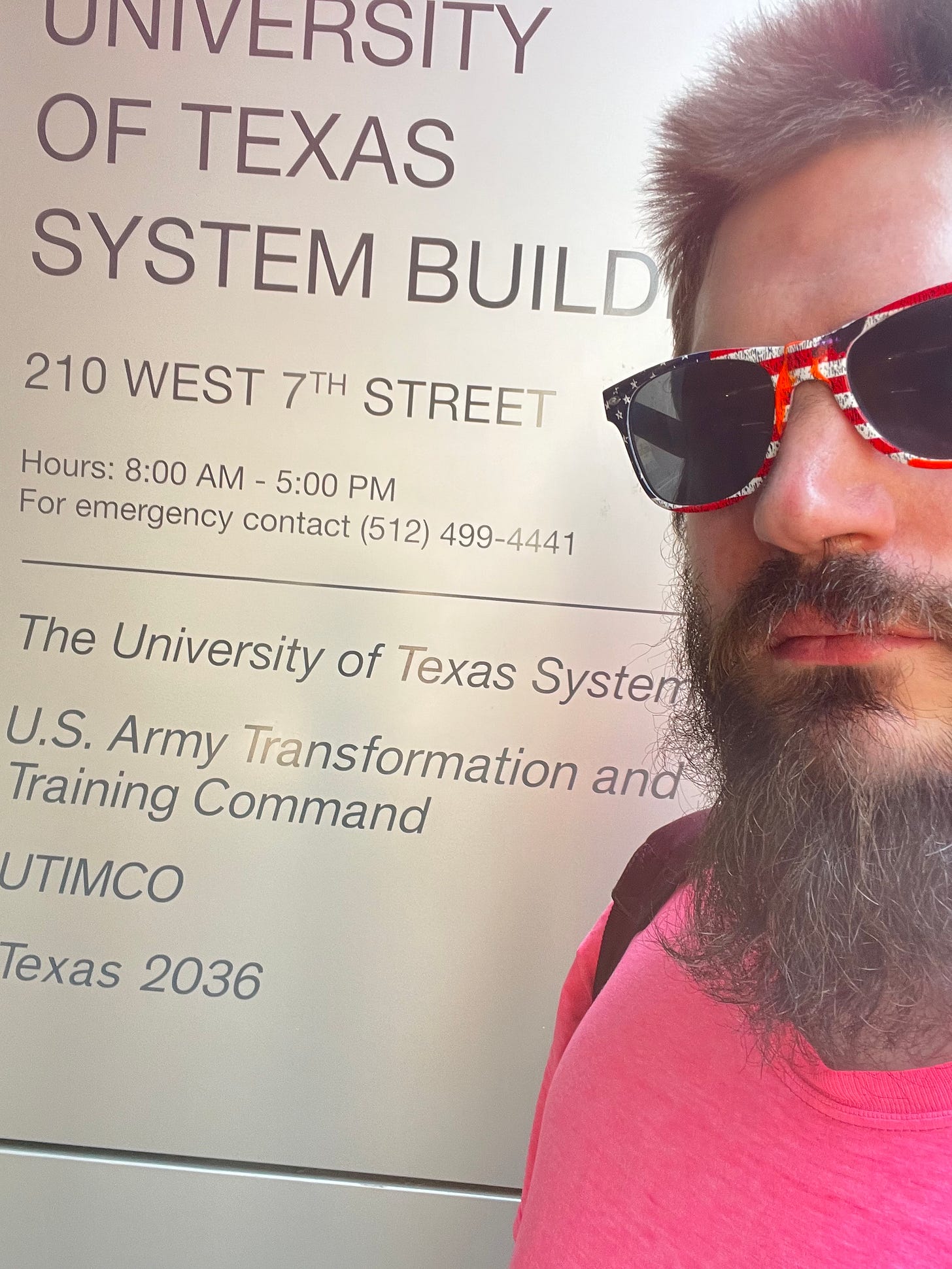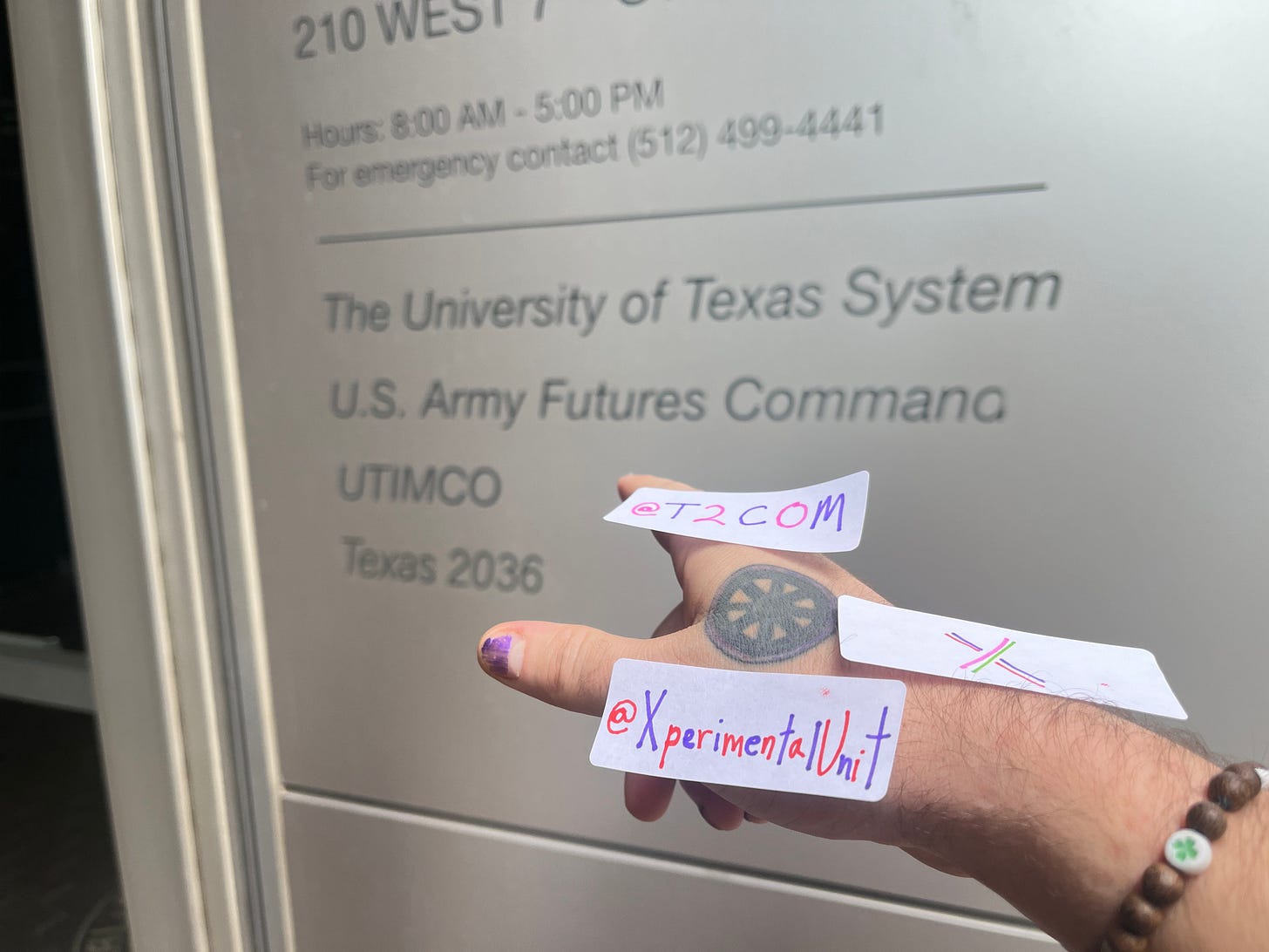 For the past two days, I’ve come down here to 7th Street in Austin, Texas to sit next to the headquarters for the new “United States of America Army Transformation And Training Command.”